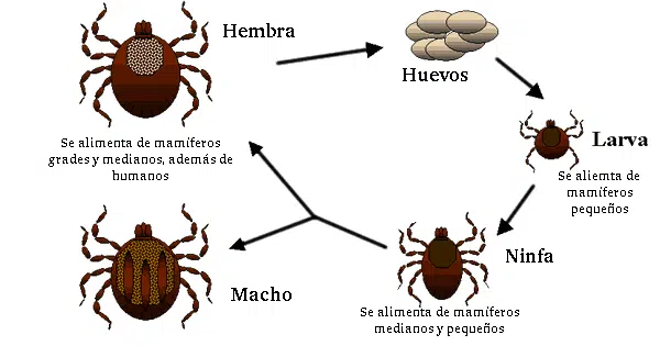 Las garrapatas son artrópodos que a lo largo de su ciclo de vida pasan por diferentes estados: huevo, larva, ninfa y adulto.