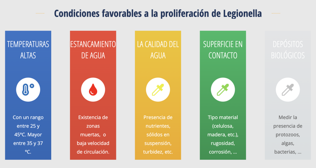 Legionella es una bacteria ambiental ya que su habitad natural es las aguas superficiales como lagos, ríos, estanques, formando parte de su flora bacteriana. Desde estos reservorios naturales la bacteria puede colonizar los sistemas de abastecimiento de las ciudades, y a través de la red de distribución de agua, incorporarse a los sistemas de agua sanitaria (fría o caliente) u otros sistemas que requieren agua para su funcionamiento, como torres de refrigeración, condensadores evaporativos, fuentes ornamentales, etc.